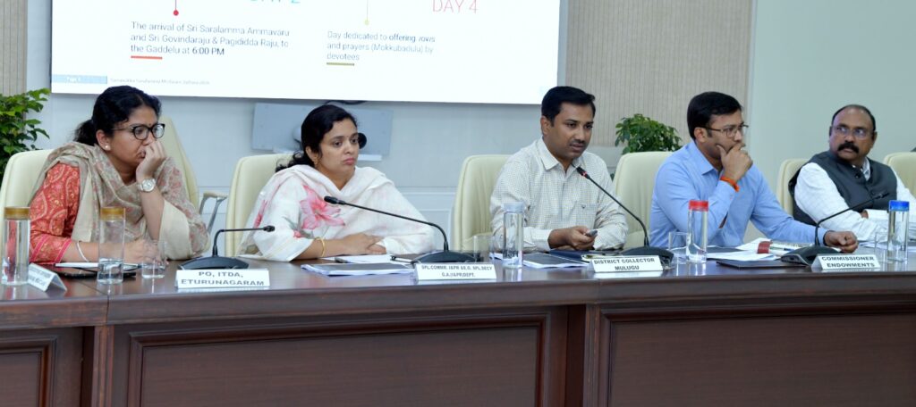 Mulugu District Collector Diwakar gave a PowerPoint presentation on the progress of works and said nearly three crore devotees are expected to visit Medaram this year.